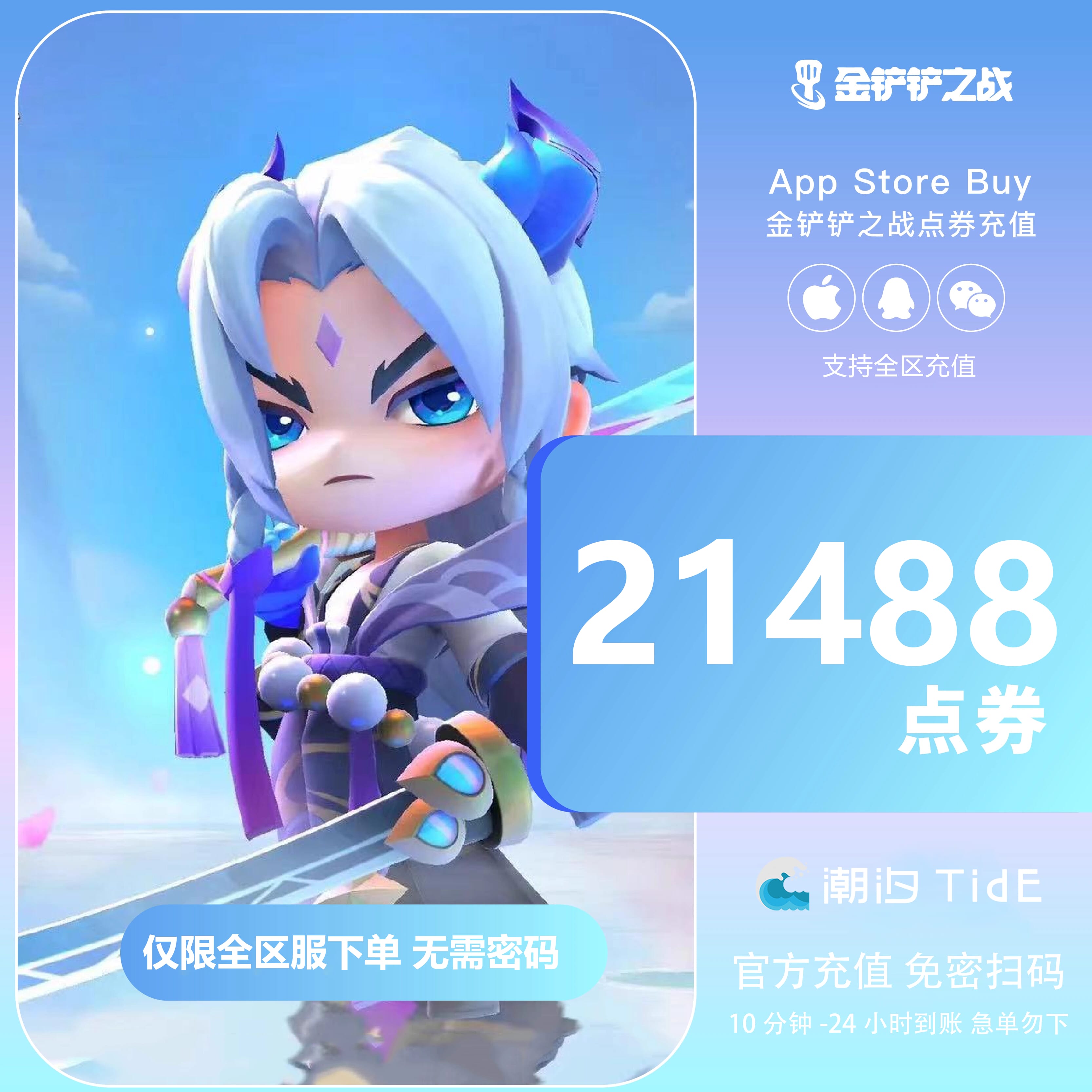 【潮汐】四区 金铲铲之战 21488点券 官方扫码充值 1-24小时到账