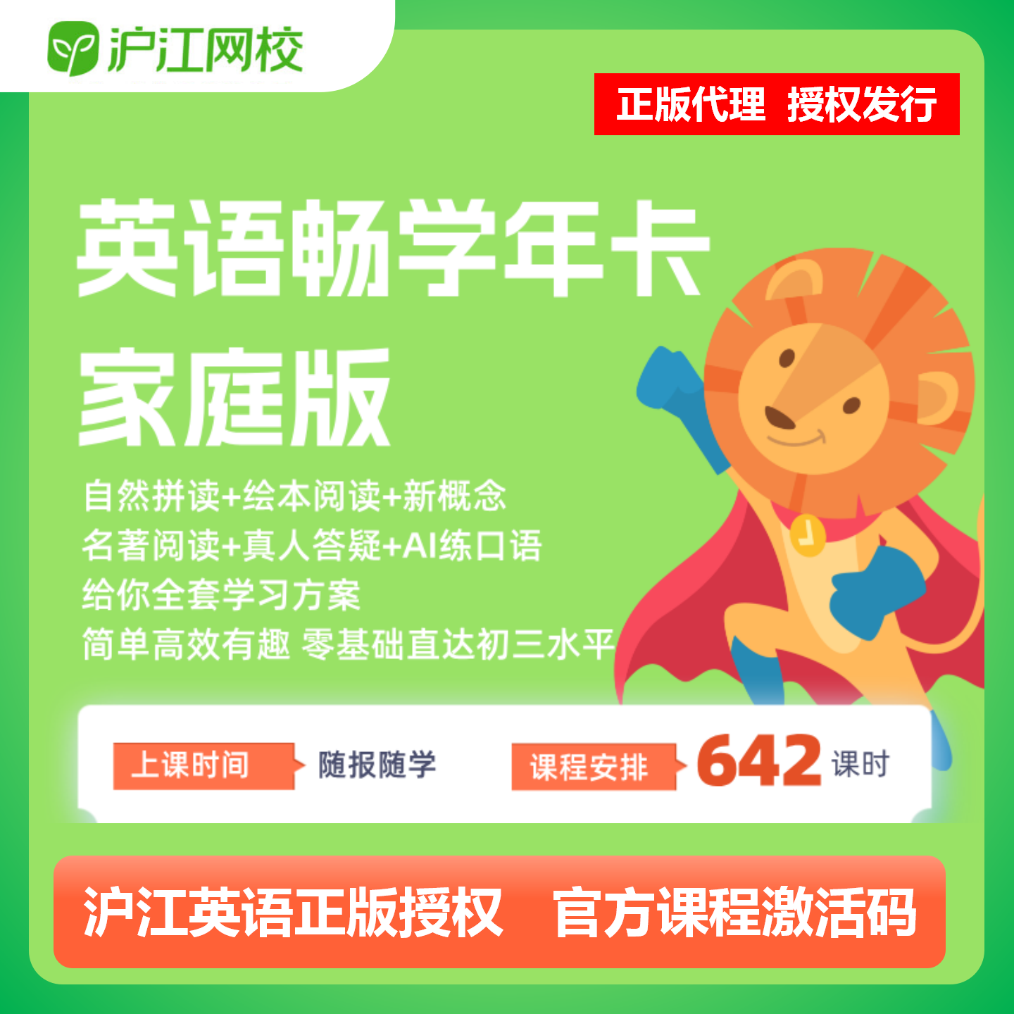 【官方卡密】沪江网校英语畅学卡『家庭版 『12个月』』限价299元