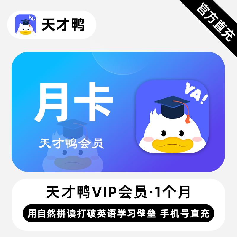 【账号直充】天才鸭VIP会员『1个月』限价10元
