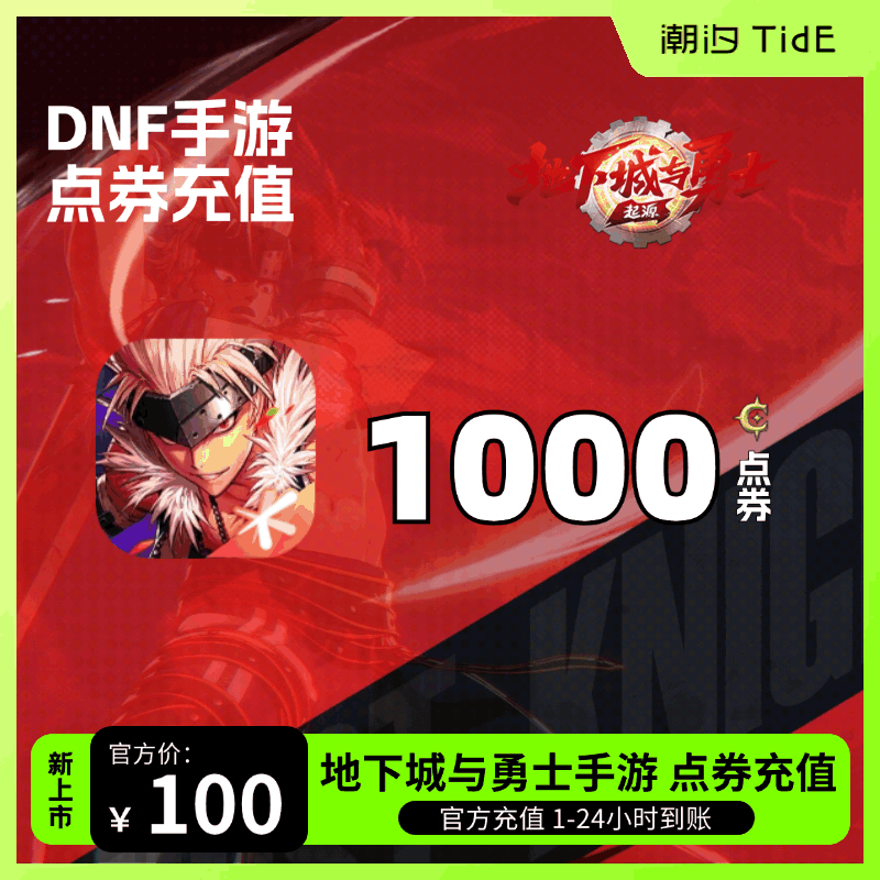 【潮汐】全区 地下城与勇士手游 1000点券 官方扫码充值 1-24小时到账