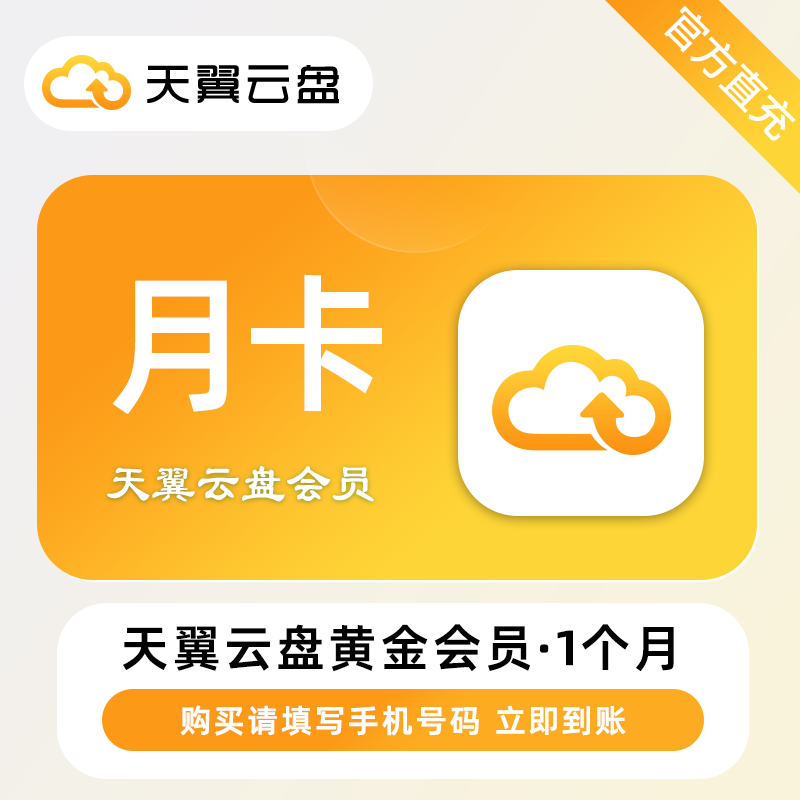 【账号直充】天翼云盘黄金会员『1个月』