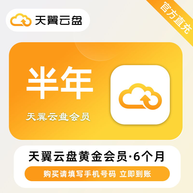 【账号直充】天翼云盘黄金会员『6个月』