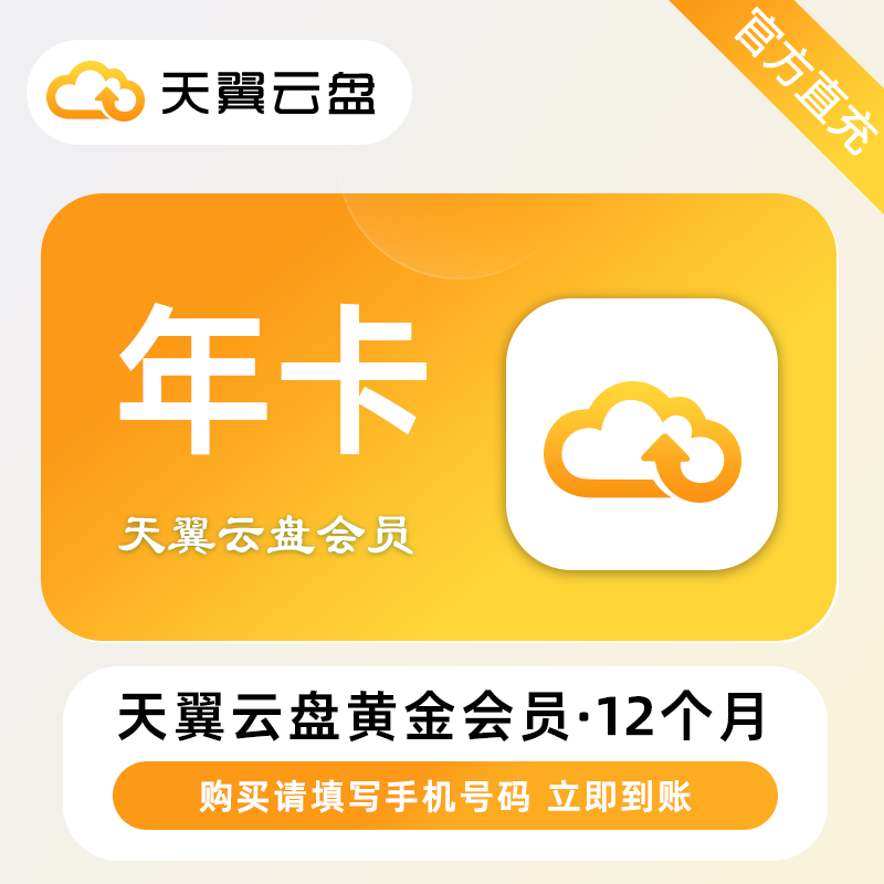 【账号直充】天翼云盘黄金会员『12个月』
