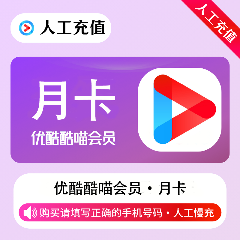 【人工代充】优酷视频酷喵会员『1个月』