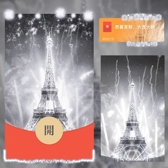 【红包封面】2026新年快乐白色铁塔烟花
