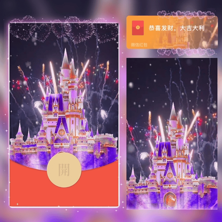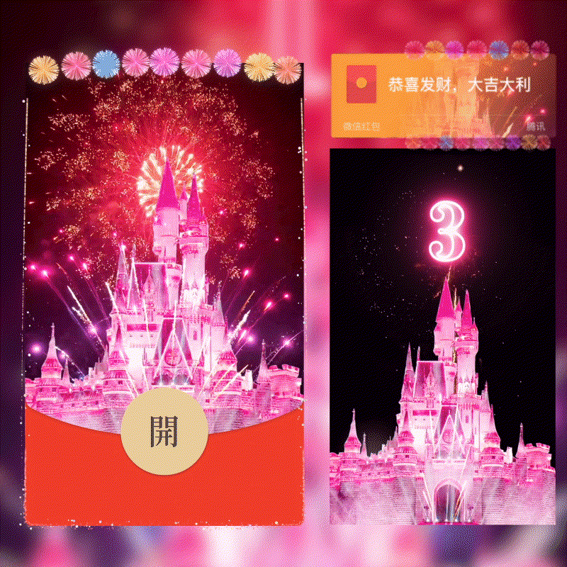 【红包封面】粉色浪漫城堡烟花/dian