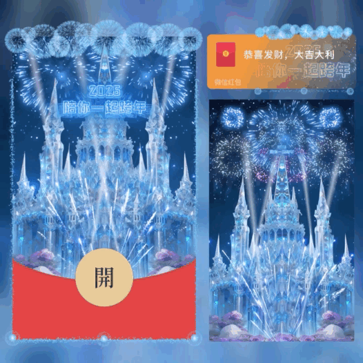 【红包封面】2026陪你一起跨年 蓝色水晶城堡烟花/bb