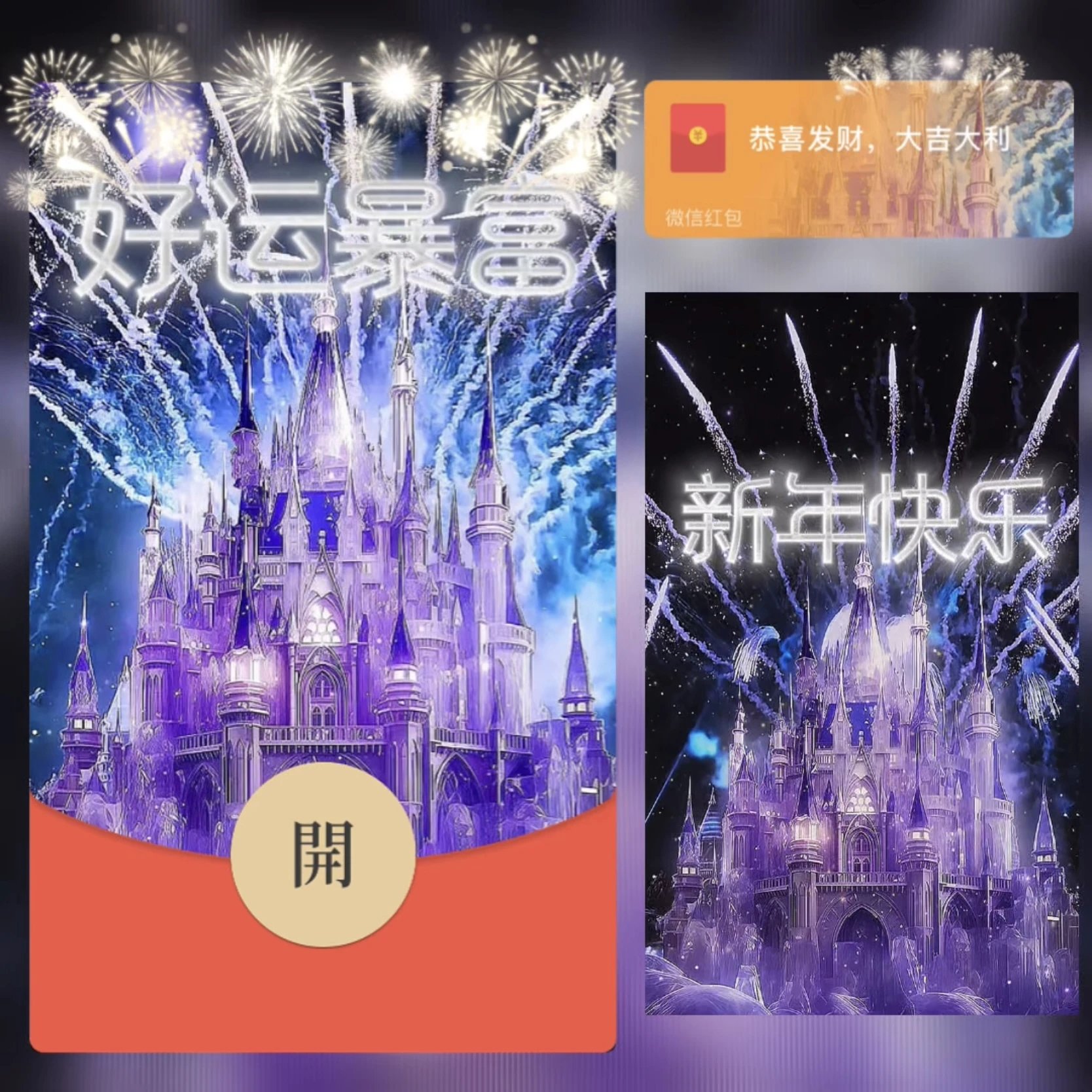 【红包封面】2026新年快乐水晶城堡烟花/新版动态/yc