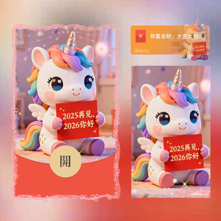 【红包封面】2026粉色新年快乐旋转木马烟花/动态/LM