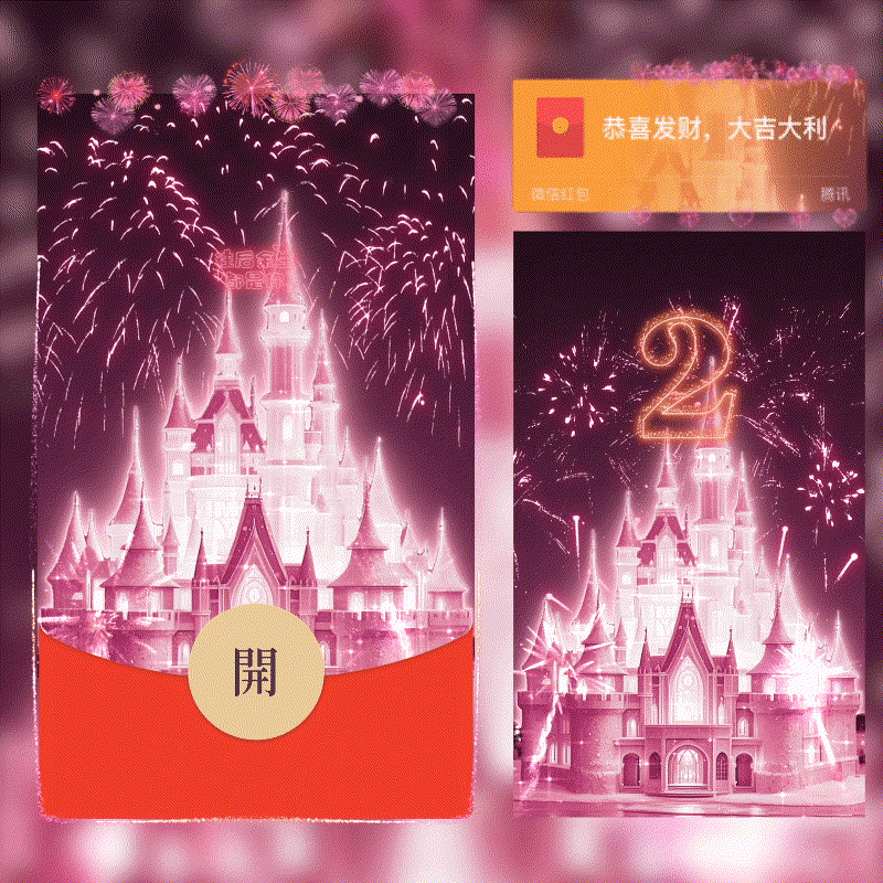 【红包封面】粉色城堡烟花/2026新年快乐/新版动态/cs