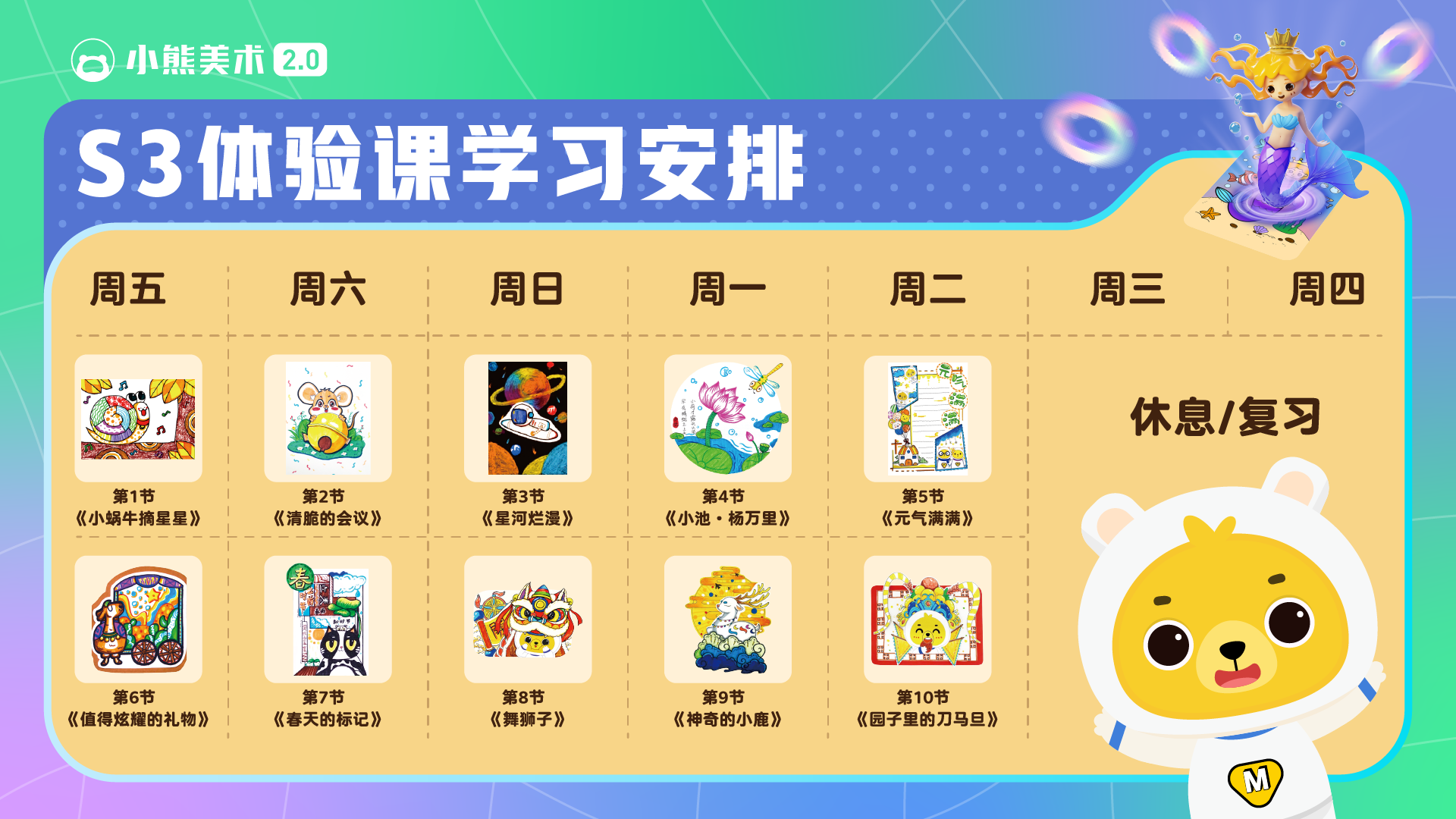【账号直充】小熊美术体验课S3『10节课+画材礼盒』