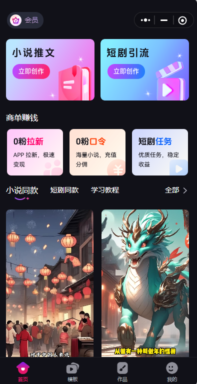 小程序搜索【元创岛】,可进入功能创作页面,实现短剧和小说内容的AI视频生成。