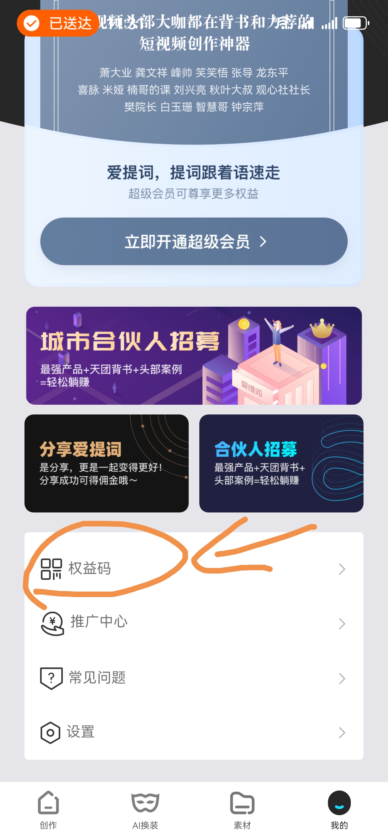 打开“提词器爱提词”App - 登录账号 - 我的 - 权益码 - 输入权益码 - 提交兑换。