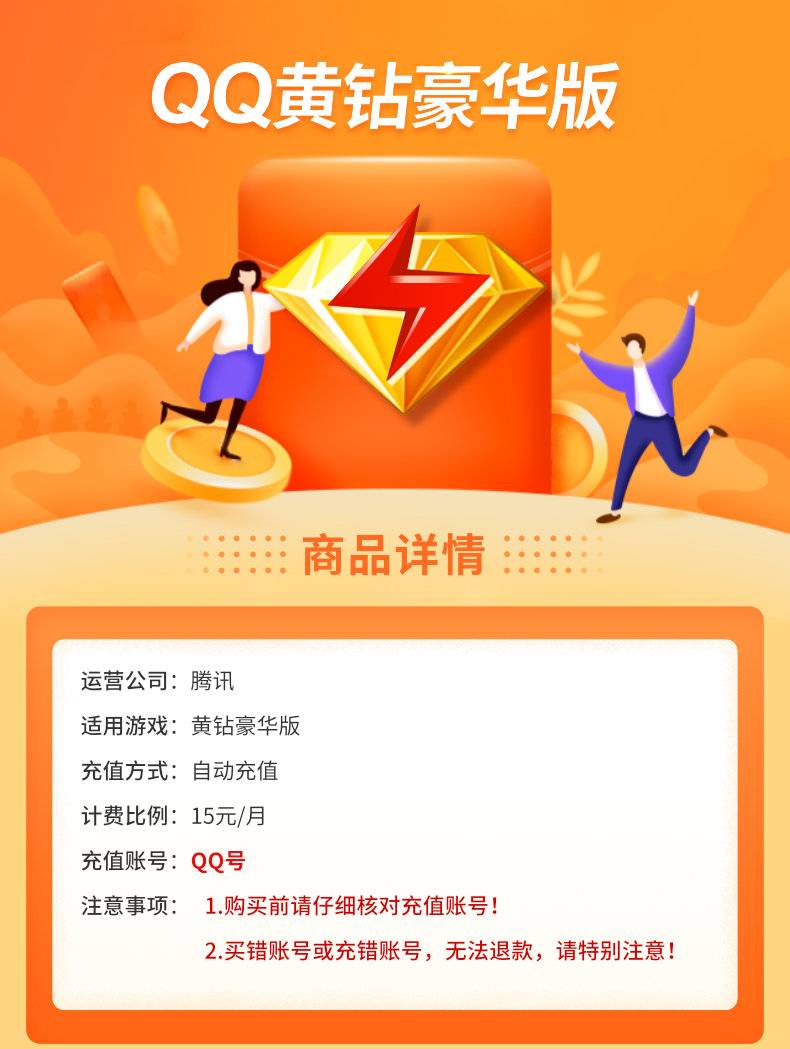 【账号直充】QQ豪华黄钻『12个月』