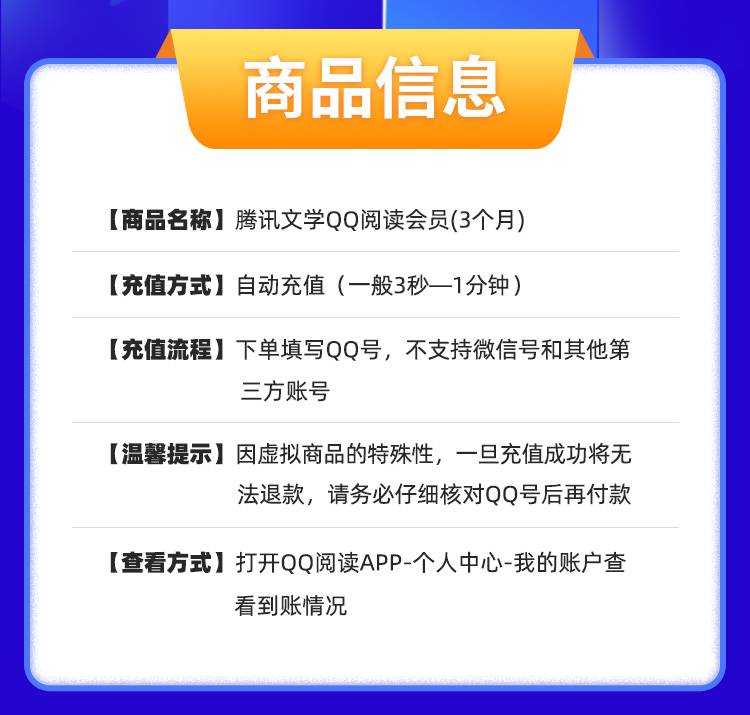 【账号直充】QQ阅读会员『3个月』