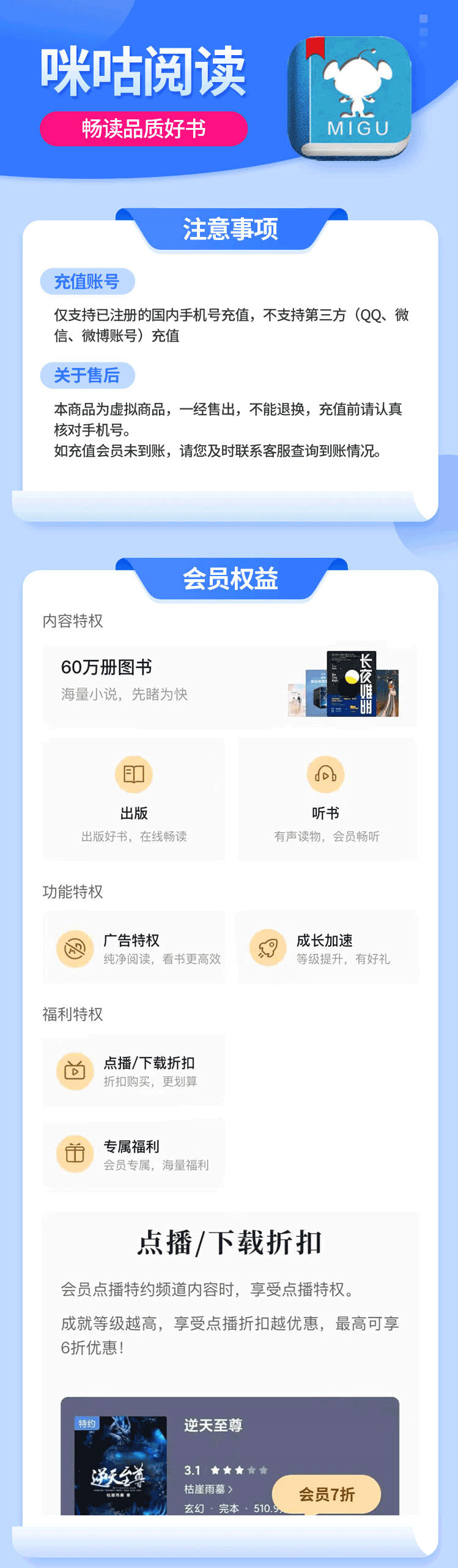 【官方直充】咪咕阅读畅享会员『3个月』